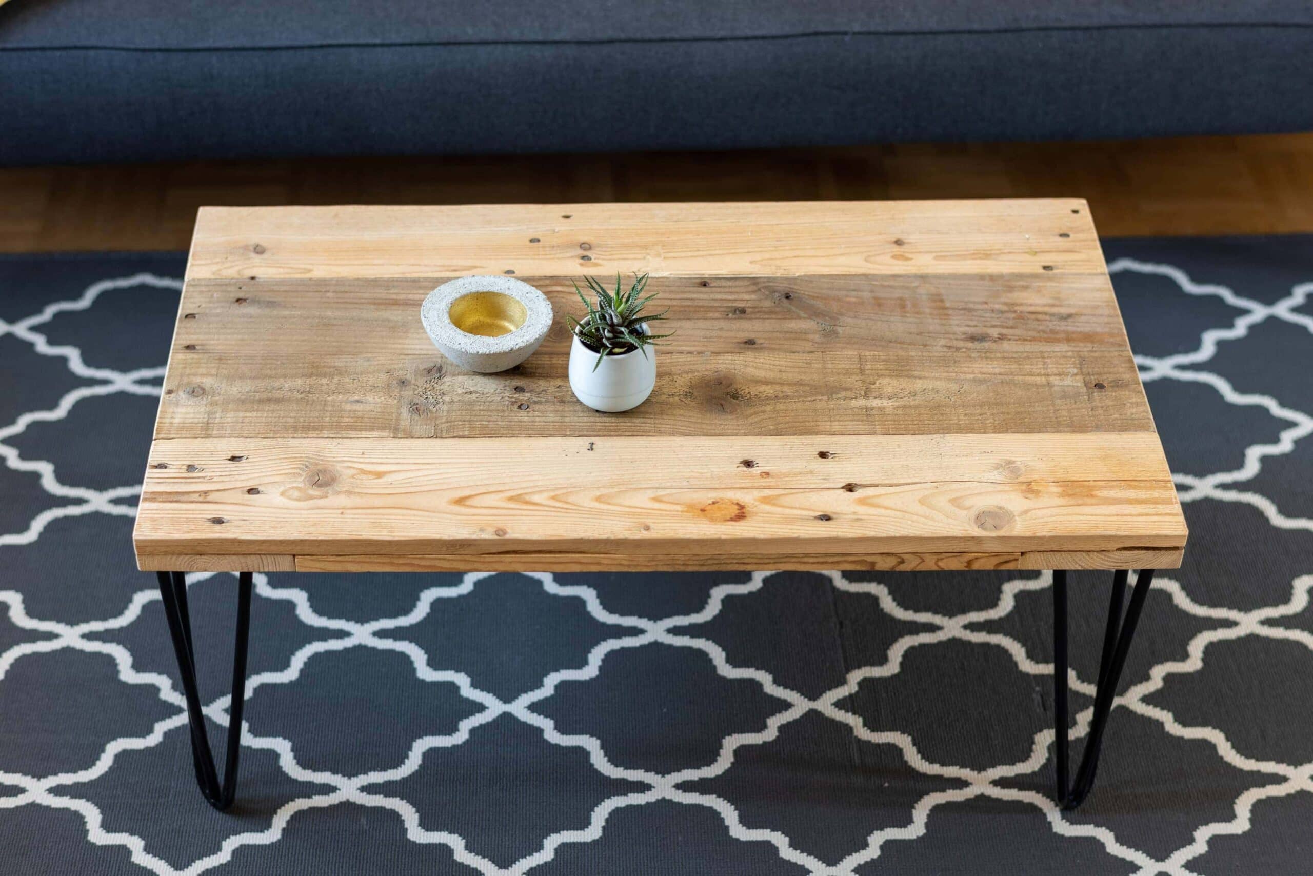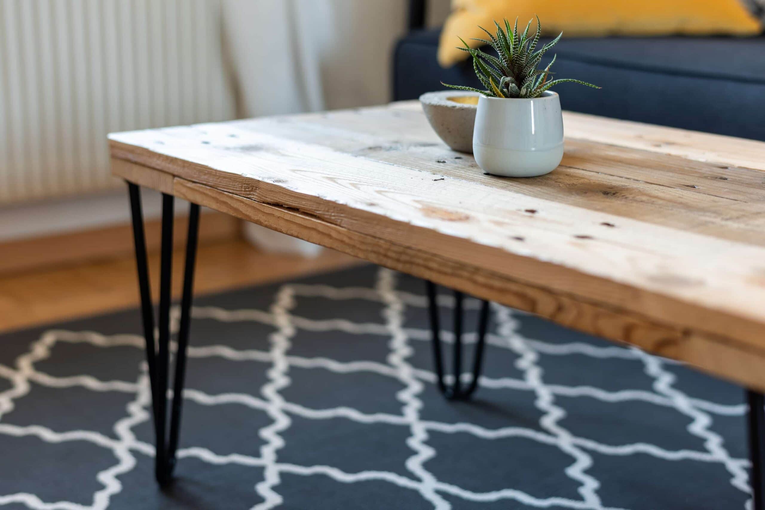 Alternativ kann der Hairpintisch vor dem Lack mit schwarzer Farbe behandelt werden.